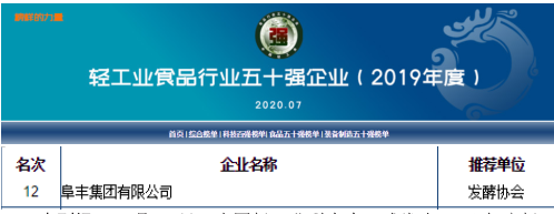 7 月 27 日,中国轻工业联合会正式发布 2019 年度轻工业企业综合榜单,其中,在发布的 2019 年度轻工业食品行业五十强企业名单中,九游j9网页版登录-九游j9(中国)位列第 12 名。(链接:http://www.clii.com.cn/zhuanti/Top100/2020year/5index.html?from=timeline)